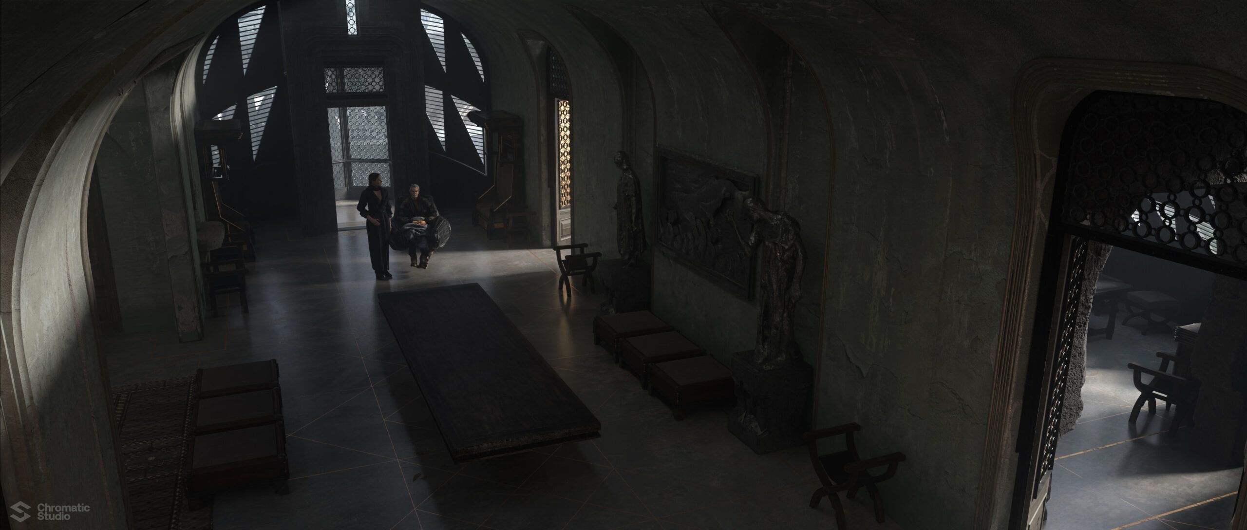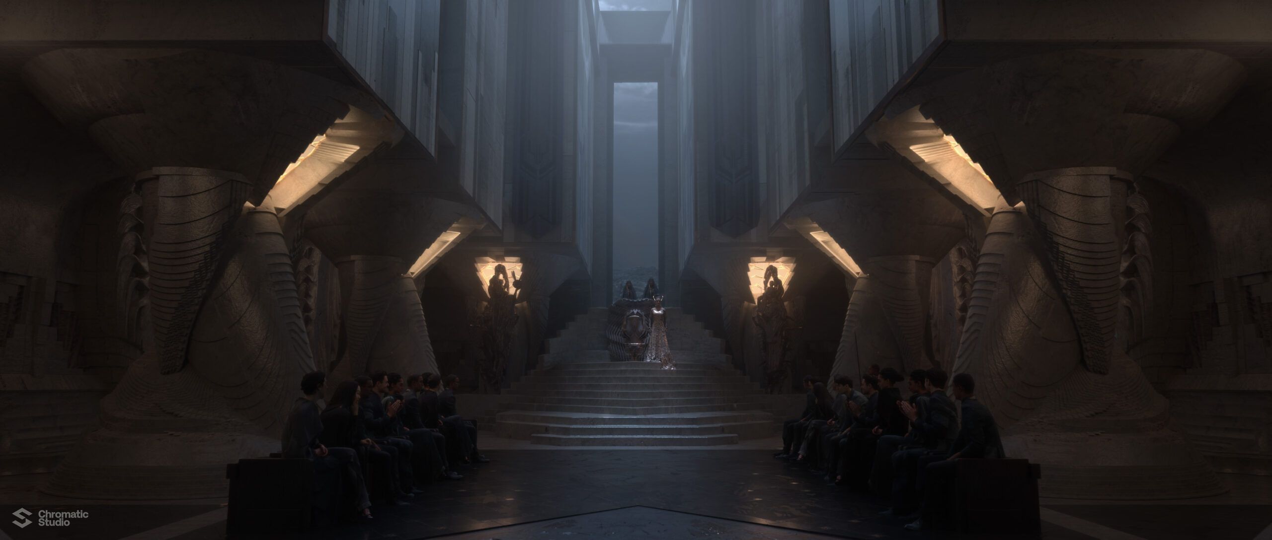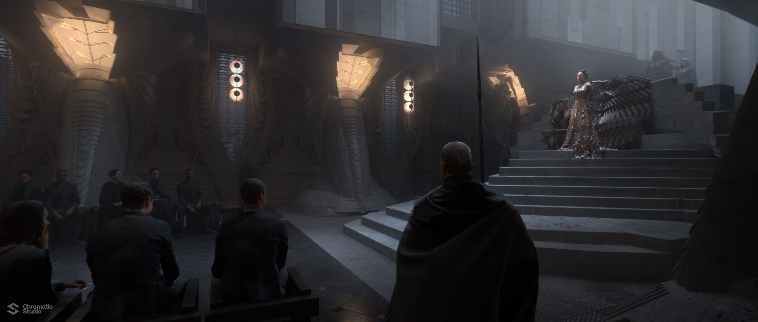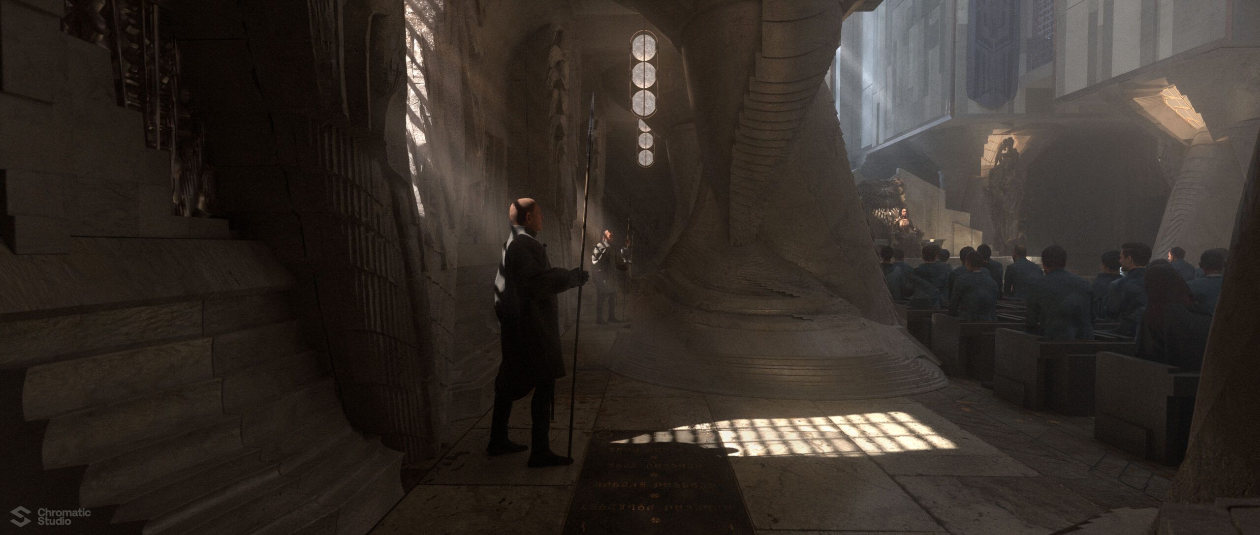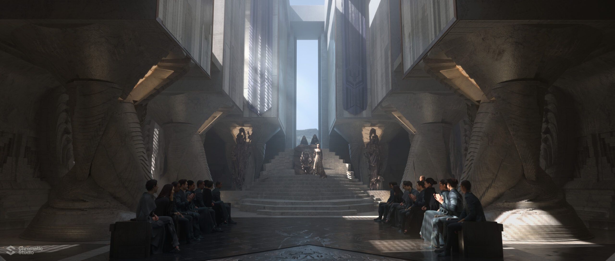 Visual development and concept art for the Dune: Prophecy series. We helped shape the visual world of the Bene Gesserit through environment designs and atmospheric keyframes.