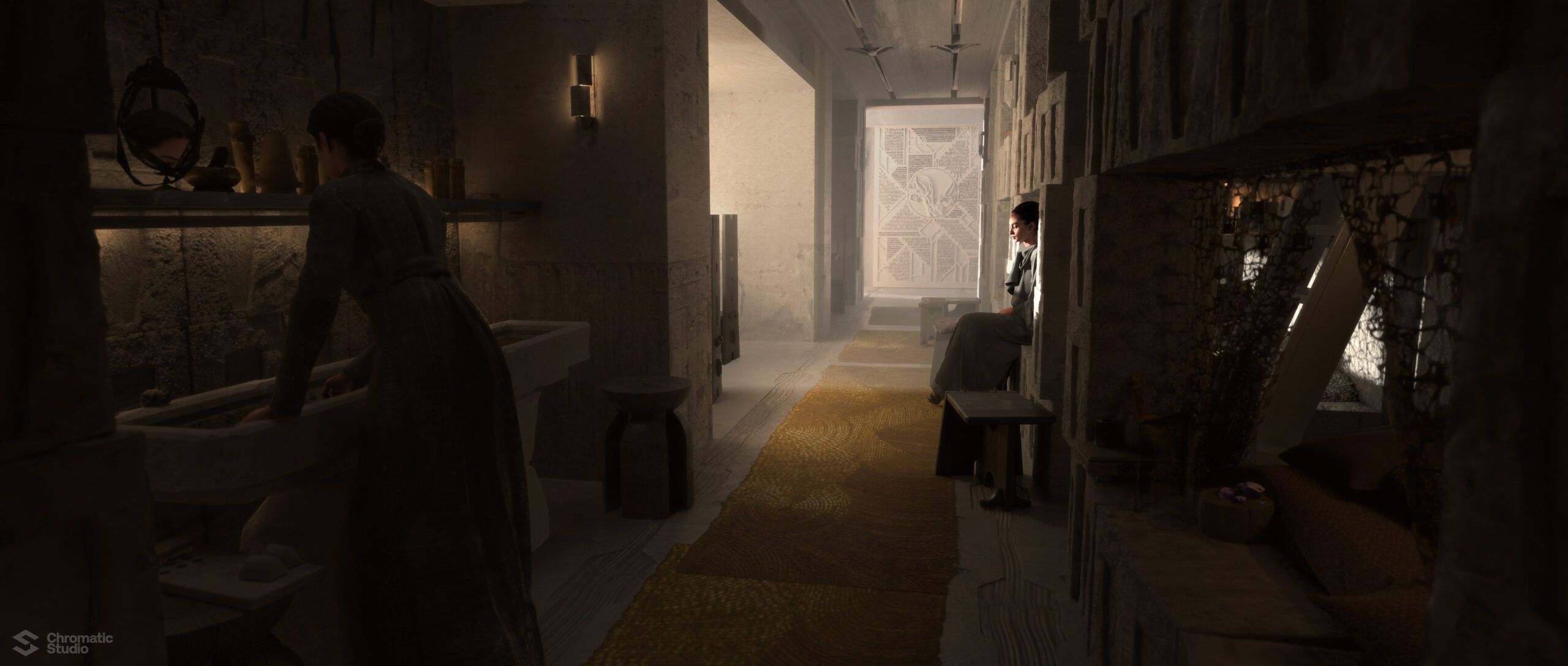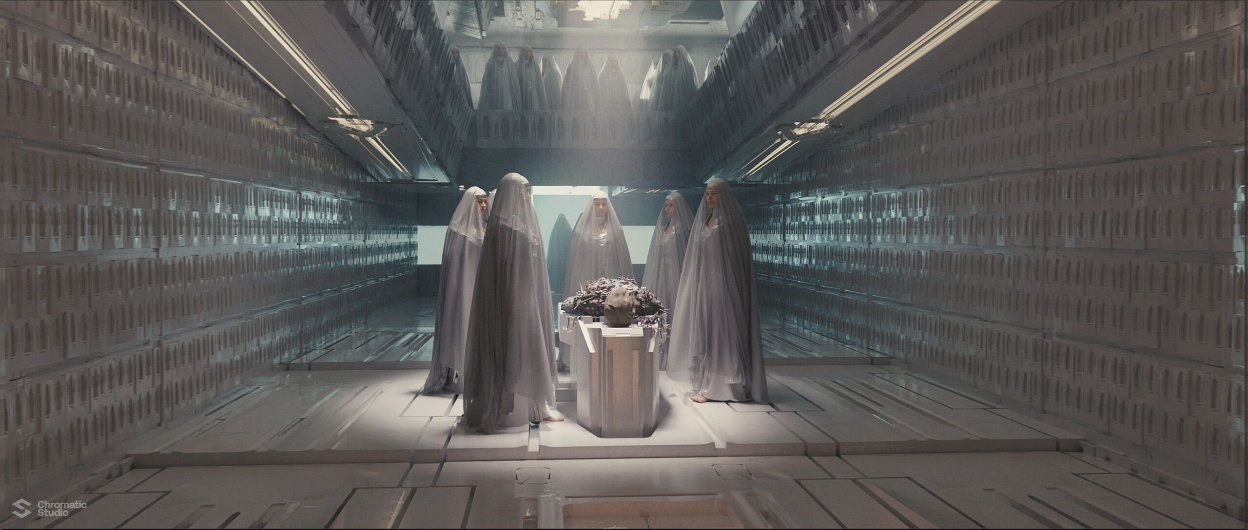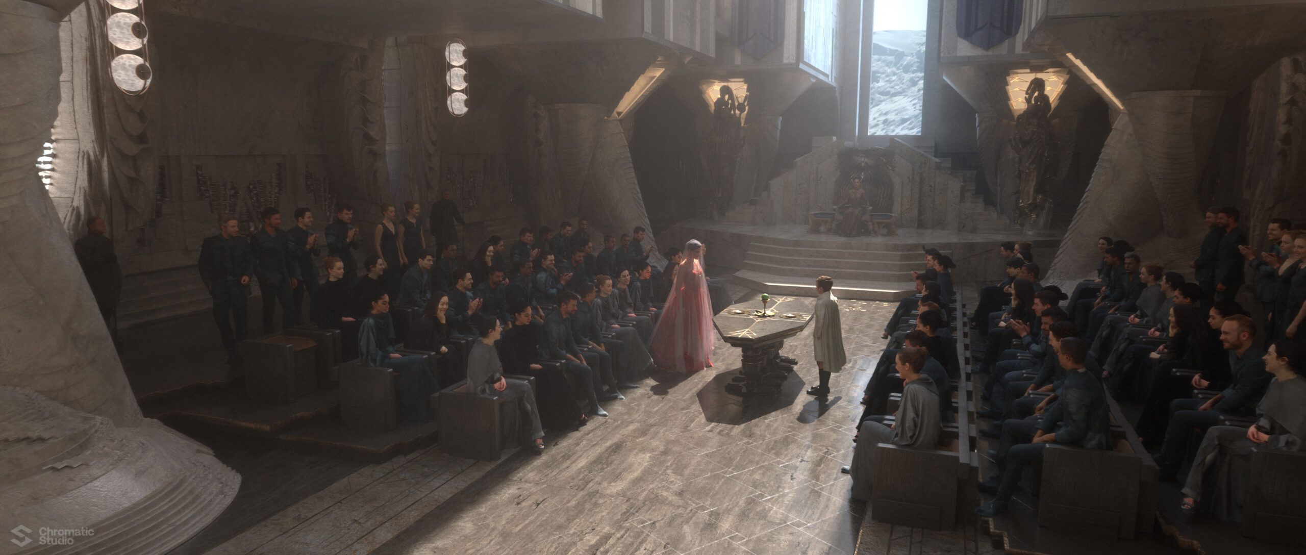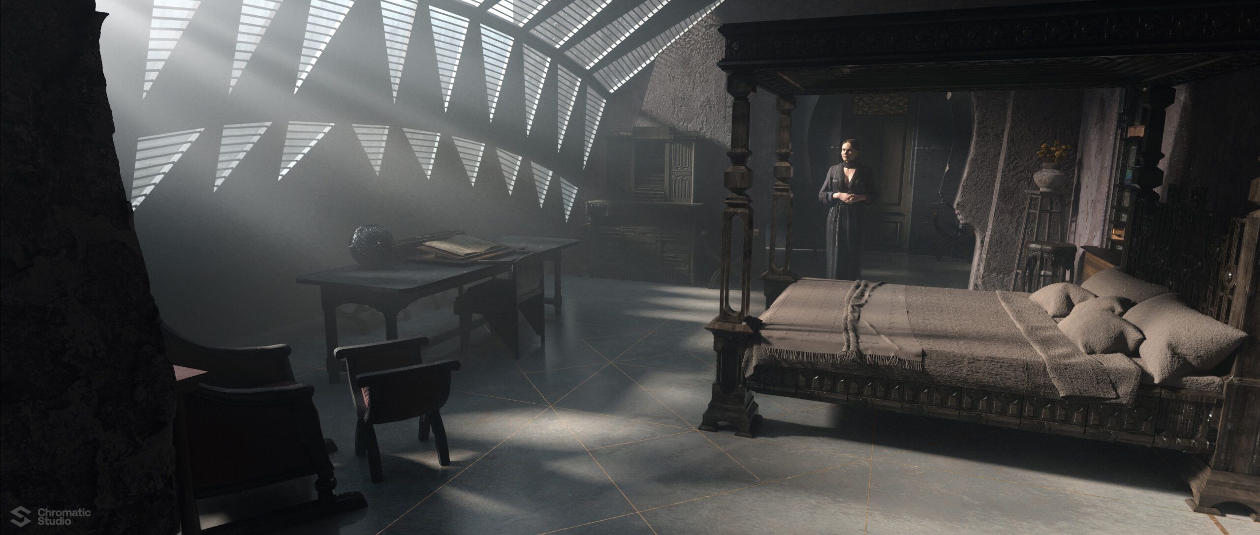 Visual development and concept art for the Dune: Prophecy series. We helped shape the visual world of the Bene Gesserit through environment designs and atmospheric keyframes.