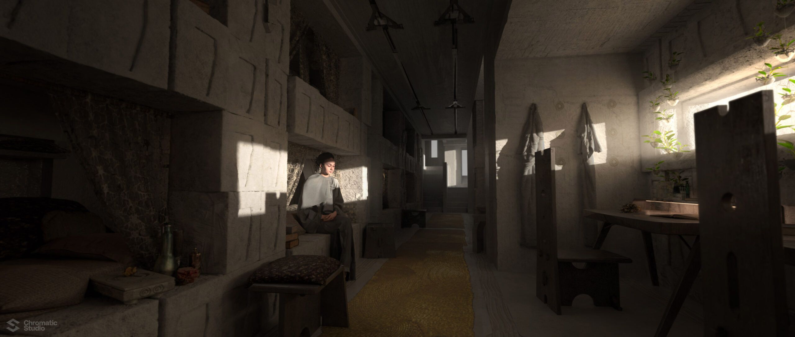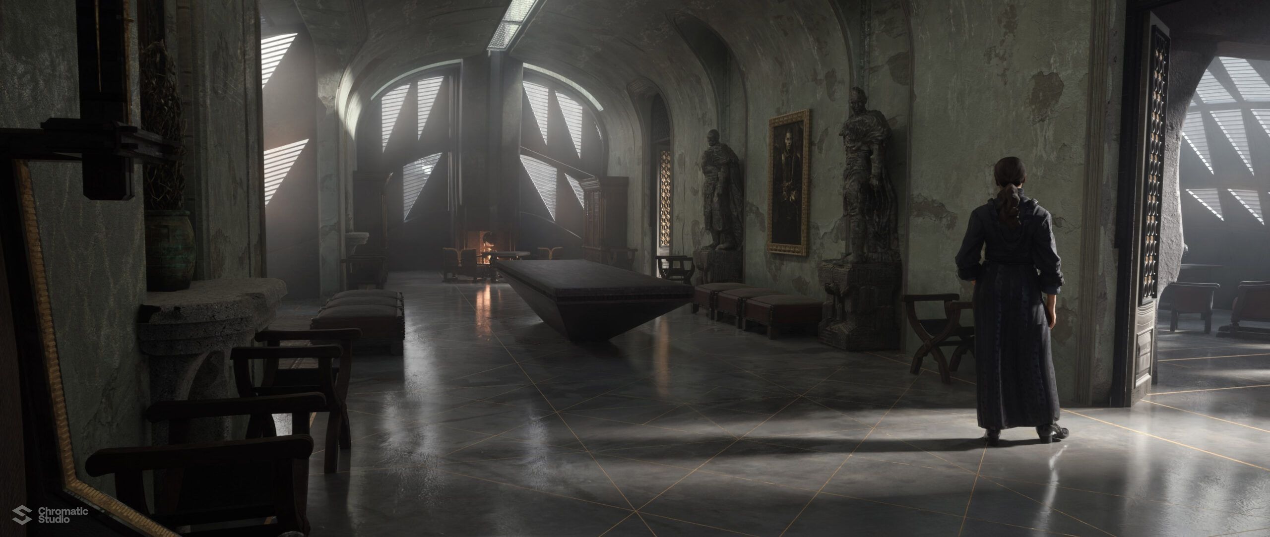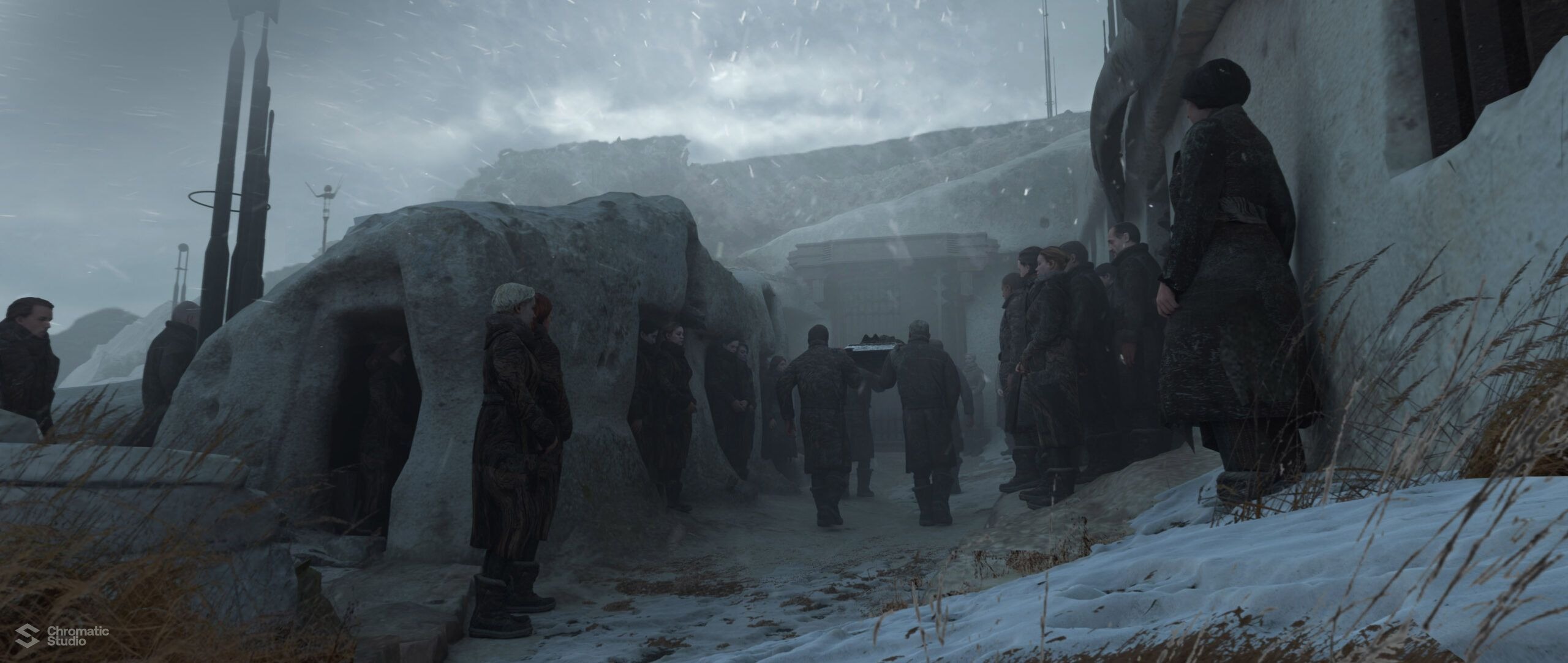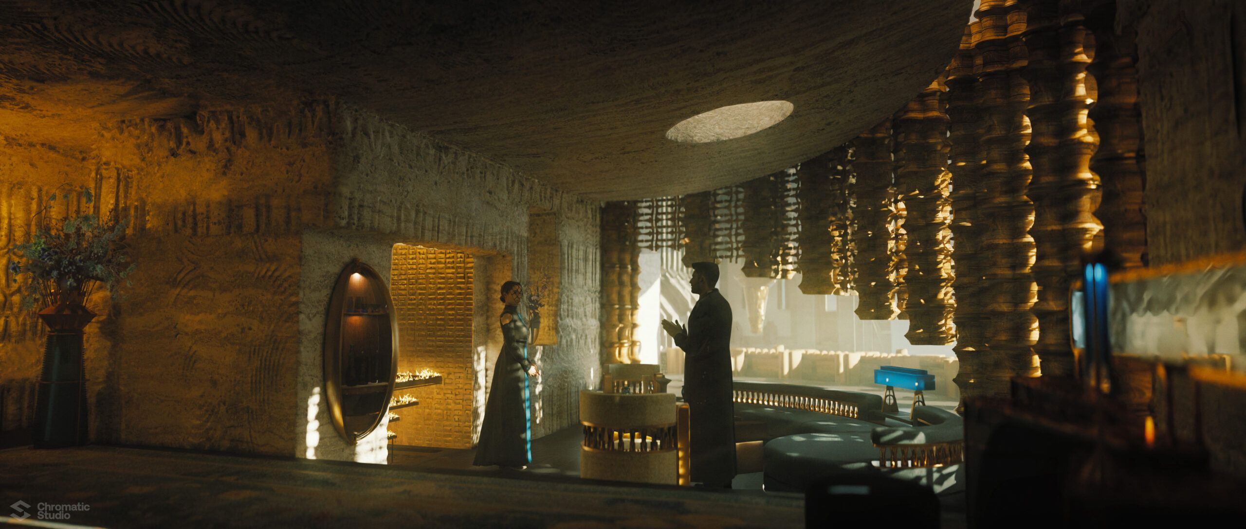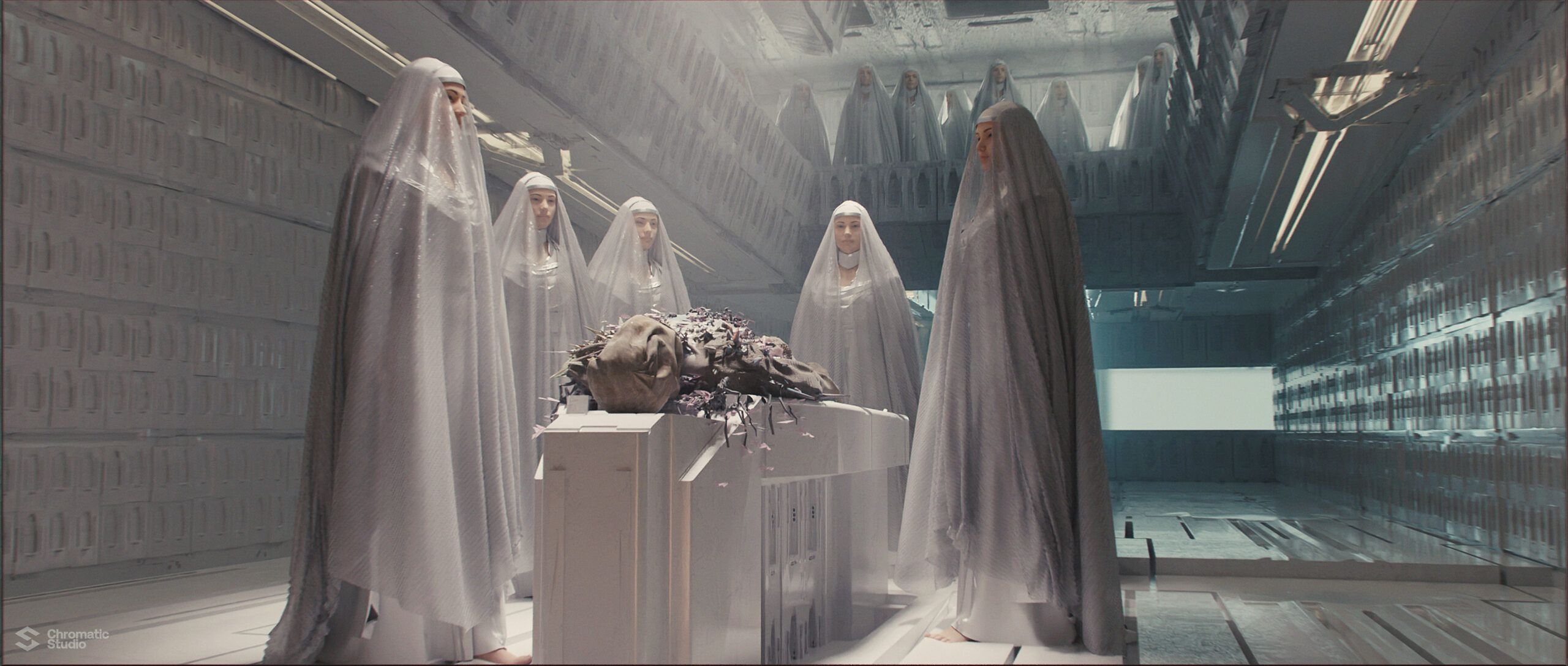 Visual development and concept art for the Dune: Prophecy series. We helped shape the visual world of the Bene Gesserit through environment designs and atmospheric keyframes.